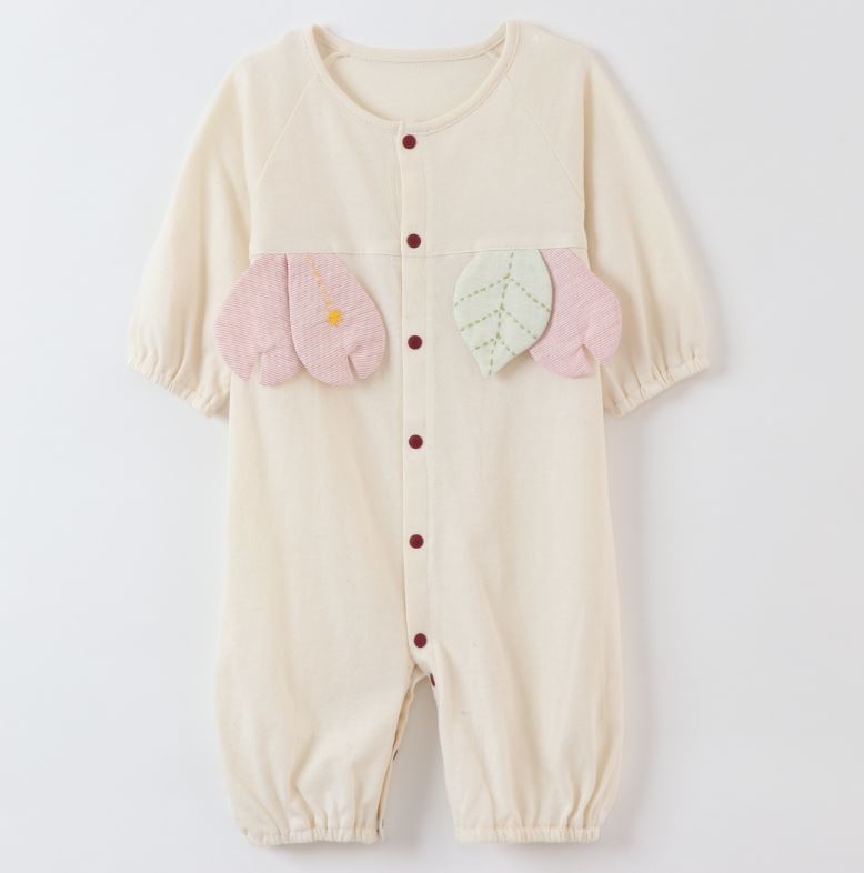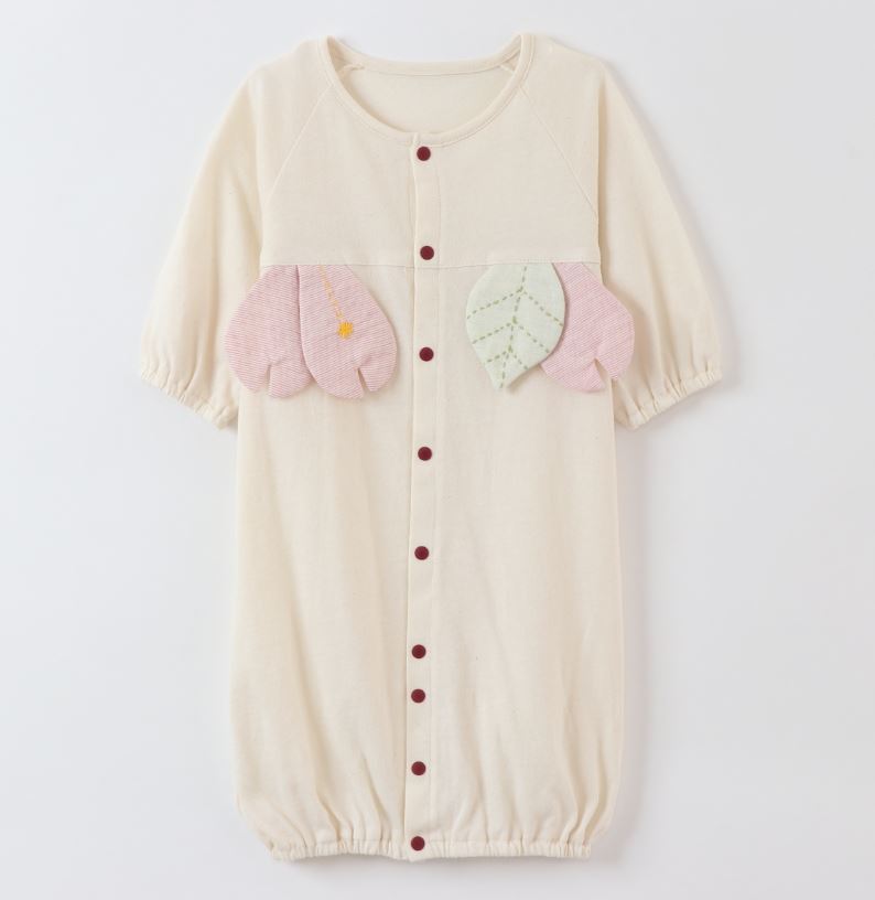 ロンパース カバーオール 日本製 オーガニック素材 女の子 子供 新生児 赤ちゃん 子ども 可愛い ソメイヨシノ 桜 さくら お花 葉っぱ 年中素材 春 夏 秋 冬 長袖 高品質 名入れ刺繍可能 名入れ お名前入れ 出産祝い プレゼント 2WAY ツーウェイ ドレス パンツ 送料込み